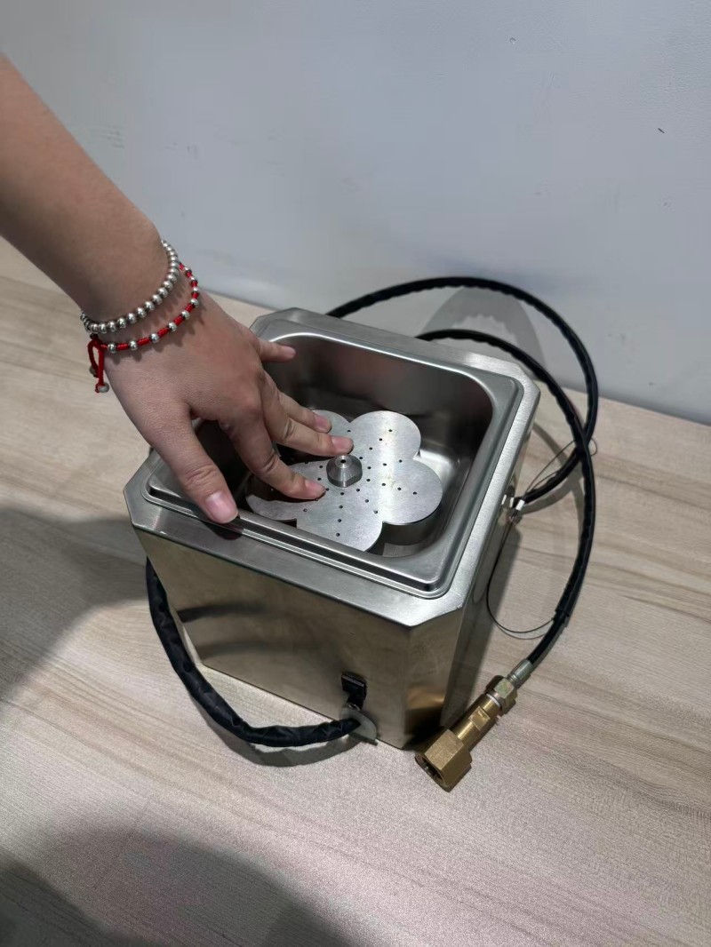 The nozzle is engineered to deliver a controlled CO₂ output of approximately 5 to 7 grams per second, ensuring stable frost distribution inside the glass. The uniform spray pattern minimizes gas waste and enhances frosting thickness consistency. Its metal structure lengthens service life and maintains reliable sealing performance.